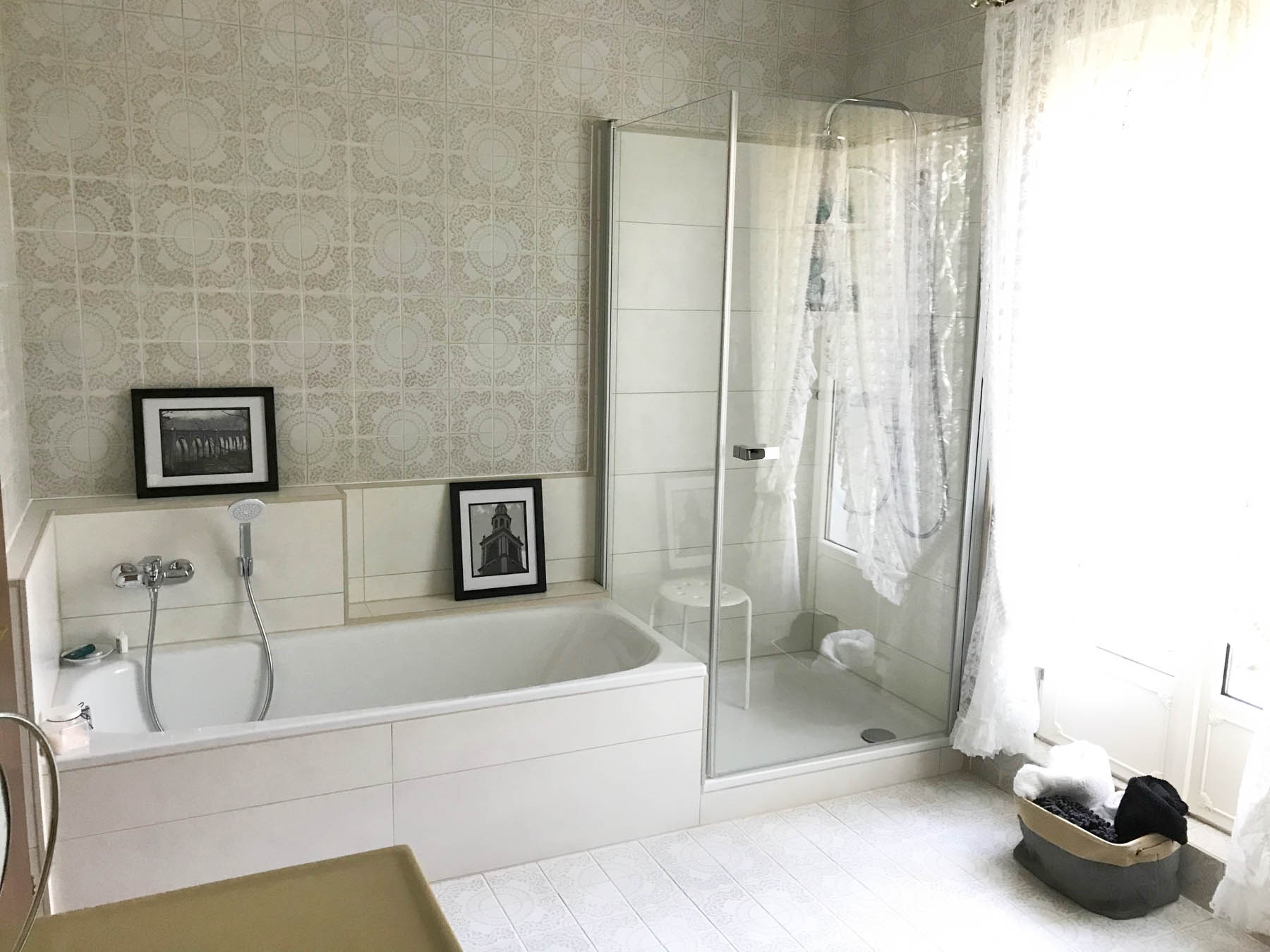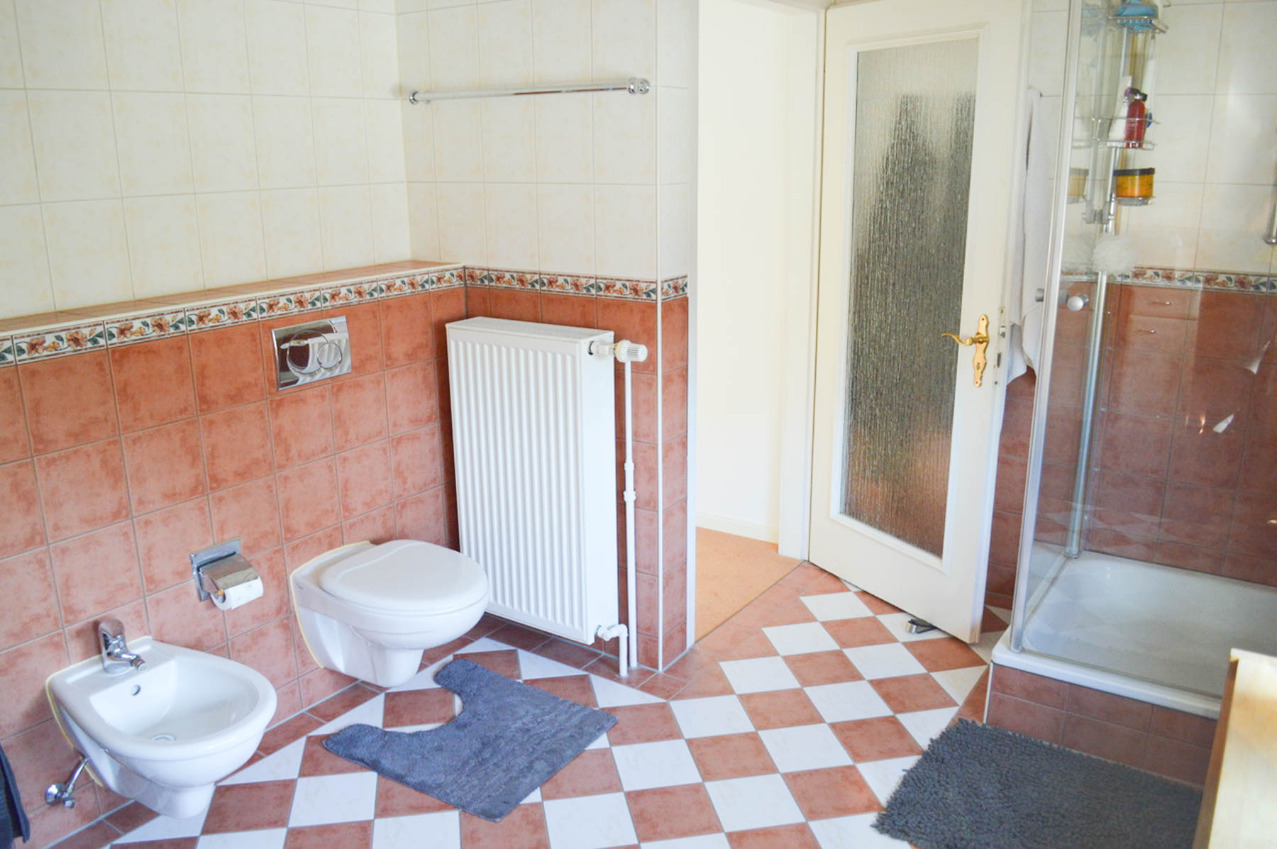 Zwei Tageslichtbäder mit Dusche, Badewanne, WC, Bidet, Waschbecken.